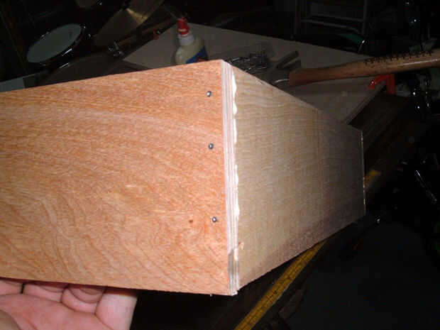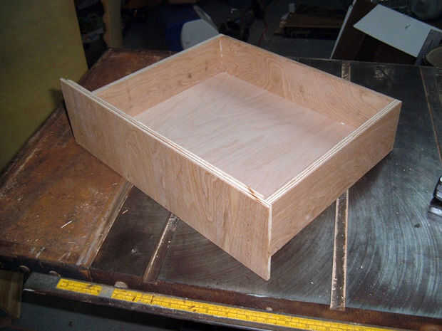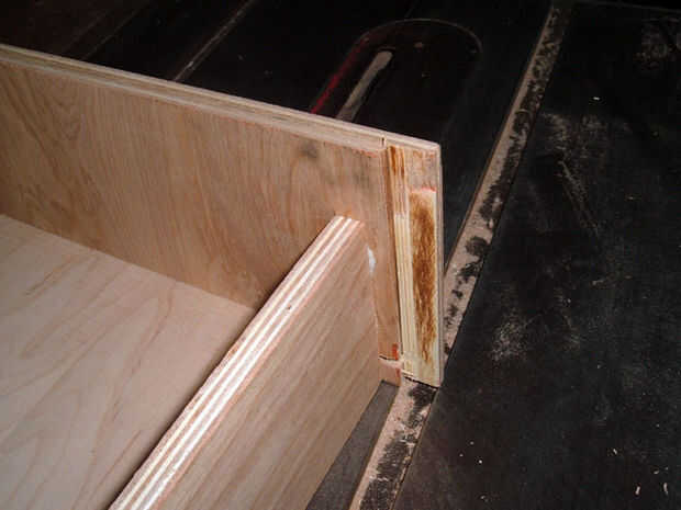Poner pegamento en todas las ranuras de la parte inferior del cajón. Luego, poner pegamento en el extremo del lado del cajón para fijar en el frente del cajón, asegurándose de las ranuras de la línea de fondo del cajón hacia arriba. El primer lado clavado en es la parte más difícil, especialmente al tener que martillo en. La do al otro lado, deslice en la parte inferior del cajón y luego encolar y clavar el cajón hacia atrás entre los lados del cajón. Repita los mismos pasos para el otro cajón.