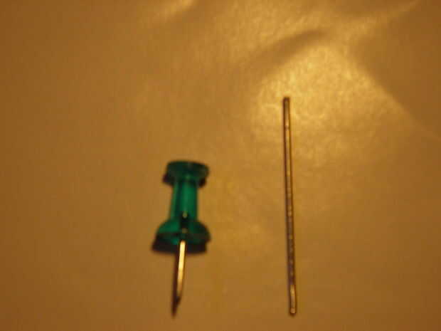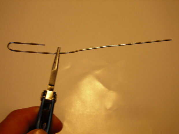 Usando la aguja nariz pilares striagten el clip de papel. (No tiene que ser perfecto) luego corte un pequeño pedazo de clip con wirecutters. (ver imagen dos de tamaño aprox.)