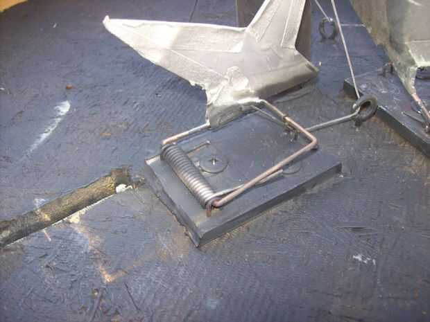 Tiró primero las partes innecesarias hacia fuera con unos alicates, luego corte la ratonera con mis tijeras.