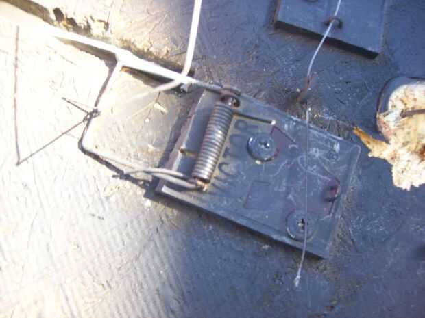 Para aquellos de ustedes que no pueden soportar el suspenso, el camino se va a trabajar es se Atornille las ratoneras en la parte inferior de la tabla, mantenerlos en la posición de cargado con la línea de pesca y asegurar la línea con los clips de la carpeta.