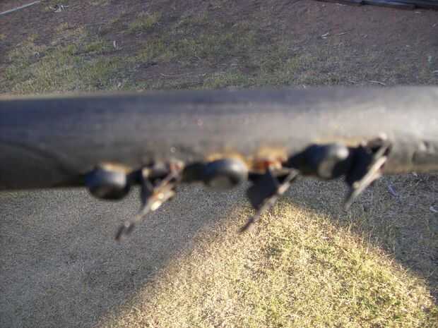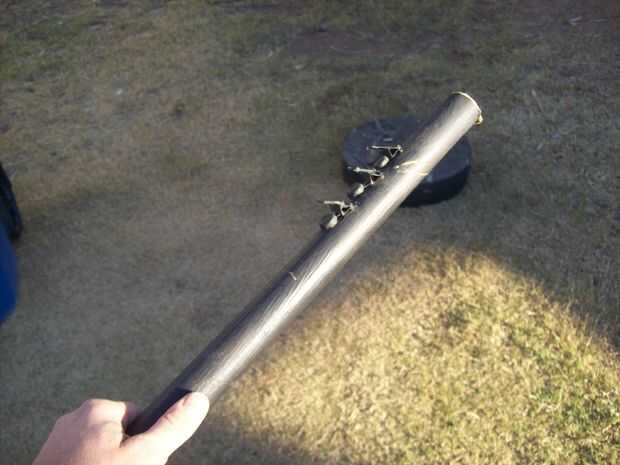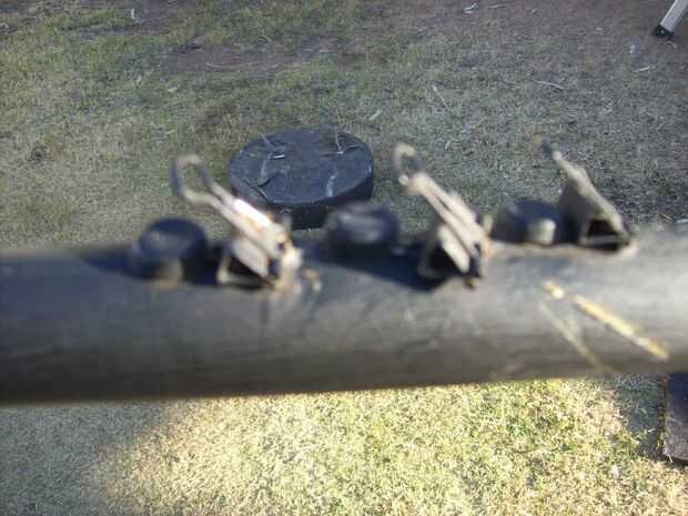 Pongo en la barra de espiga uno detrás del otro como se muestra. Tuve algunos clavos con enormes cabezas plástico que usé para esto. Creo que fueron destinados a ser utilizados como pies para una mesa o una silla.
