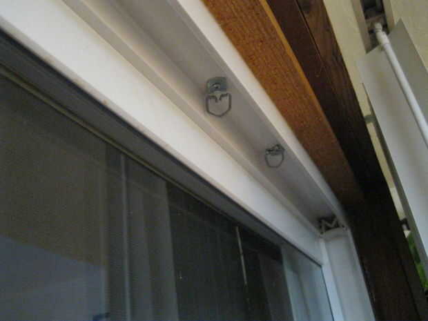 A continuación perfore un orificio piloto en la pista de puerta para cada anilla. Instale los anillos en d.