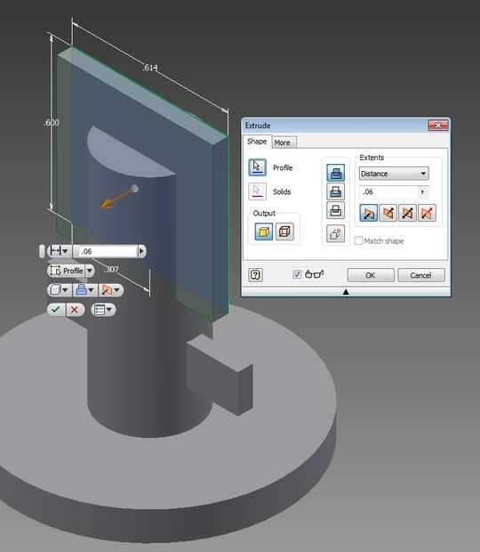 Yo utiliza Autodesk Inventor, que es de provecho a los miembros, para diseñar el reemplazo/cerradura de la perilla. Después de tomar medidas de cuidado de la original botón y ranura que encaje en, entrada en Inventor. La diferencia fue que en lugar de dibujar la perilla en la parte superior, amplié la pestaña en la parte inferior. De esa manera sólo se puede desbloquear desde el fondo.