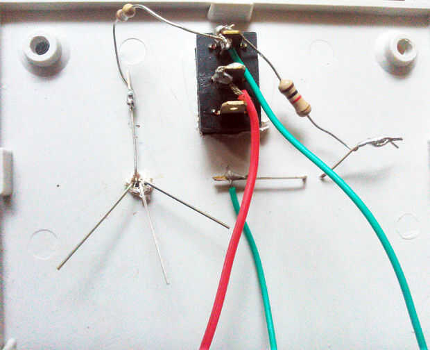6. La soldadura de una 1KΩ, una resistencia de 470Ω y un cable a un polo del interruptor. En el otro polo, soldar cable desde el terminal positivo de la batería.