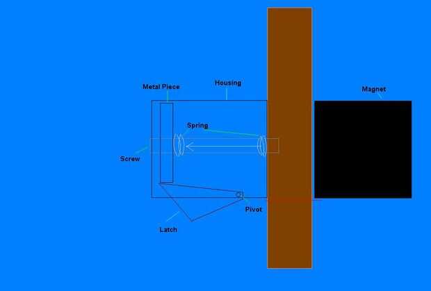 Me di cuenta cómo duplicar la idea de bloqueo que tenía, pero era incapaces de hacer uno tan pequeño como lo habían hecho. Así que después de algún tiempo pasó, me imaginé cómo hacer un imán de bloqueo de algunos materiales que mentían alrededor de la casa. A continuación verás los dos diseños diferentes, pero sólo te muestro cómo hacer uno con el "camino de cierre". Desafortunadamente, usted necesita un imán fuerte utilizarlo incluso para una puerta delgada. Yo, por supuesto, falta el imán fuerte necesario para hacer funcionar este bloqueo ahora. Se puede ver en el video que pude conseguir la cerradura para responder, pero el imán era demasiado débil para atraer el cierre completamente.