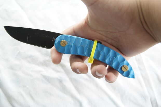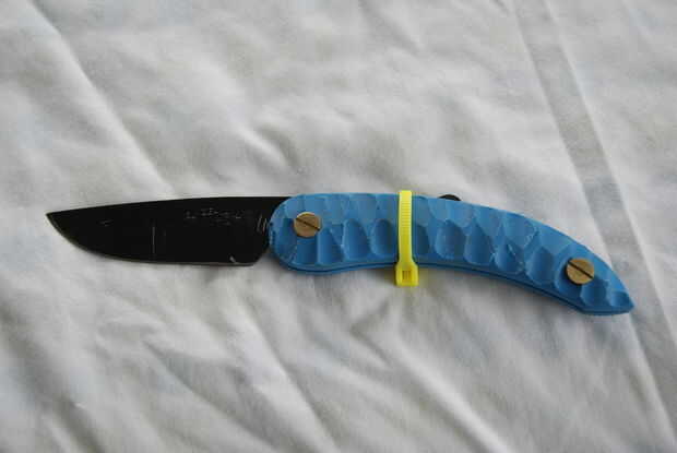 Permítanme comenzar explicando carpetas de fricción. Una fricción navaja es un cuchillo sin sistema de bloqueo que tiene la espiga (parte del cuchillo detrás de la hoja) extendida hacia fuera, así que cuando el cuchillo se dobla en una posición abierta, la palma mantiene cierre (como se muestra en la última foto). Este cuchillo pasa a ser el cuchillo de campesino svord. Me gusta este cuchillo pero estoy harto cortarme antes de cuando se usa de que se cierre sobre mí. Este mod proporciona un bloqueo temporal para la cuchilla la mantiene en la posición abierta. ADVERTENCIA: aunque esto es un bloqueo temporal, no sustituirá para una cerradura real. No ponga este cuchillo para uso duro. Si utilizas tu cuchillo correctamente, no debería tener el cuchillo cerca de usted.