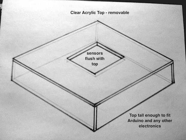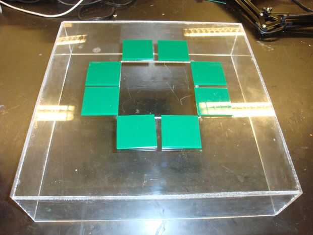 1.8x1.8 ocho "cuadrados de acrílico del color fueron colocados alrededor de la abertura del sensor para proporcionar estabilidad y estética de la apelación. Fueron atados con cinta de doble cara.