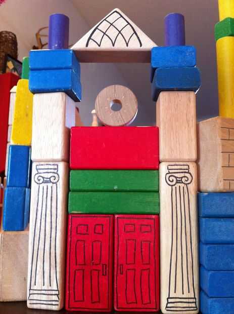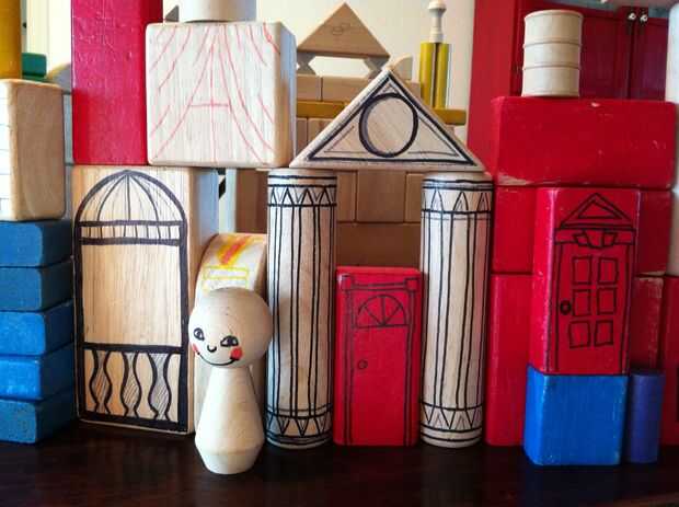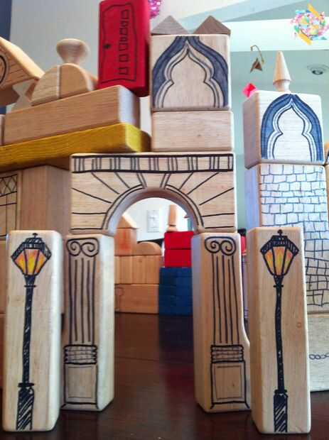 tomar algunos bloques de madera simple pero maravilloso y agregar detalles arquitectónicos con marcadores permanentes. Los niños se unió a mí en la adición de decoración y que ha traído el nuevo valor del juego a nuestros bloques desgastados!!!!!!