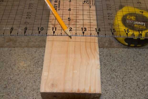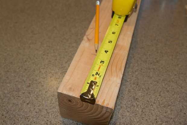 Ahora hacer las mediciones en la 2 x 4. Esto tiene que ser suficientemente grande para contener 2 cuadras. Medida 71/4 pulgadas y su línea para guiar el corte. Una vez más si varios a la vez Asegúrese de medir y cortar cada vez o hacer una guía.