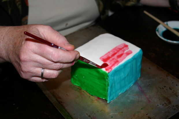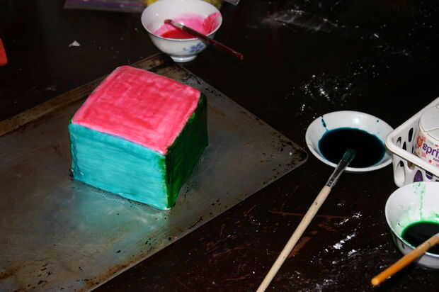 Mezclan tres colores principalmente porque encontrar tres pinceles para pintar y pintó las tortas.