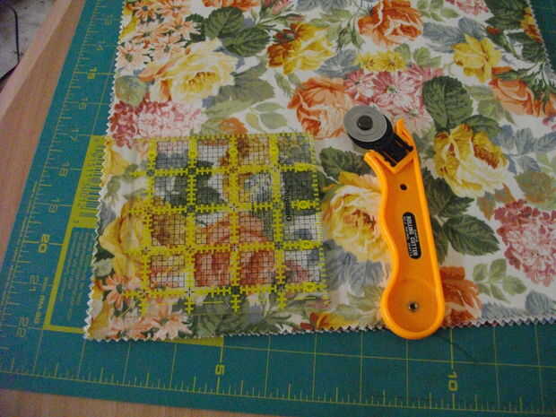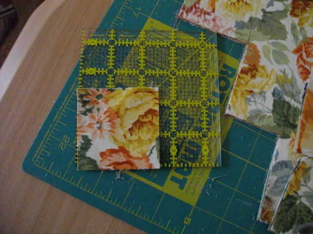 Cortar la tela en cuadrados de 2,5 pulgadas, dejando 1/4 pulgada en cada lado de un margen de costura.