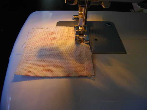 Utilizando el margen de costura de 1/4 pulgada, coser piezas juntos. Recuerde colocar derecho lados juntos. Cose las cuatro piezas en una fila y luego añadir las dos últimas piezas al lado de la última pieza en la fila.