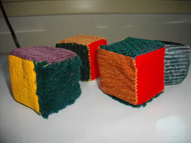 Bebés empezar a aprender sobre el mundo a través de sus sentidos. Al elegir las telas que tienen diferentes texturas para cada lado, los bloques se convierten en un tesoro sensorial: nubbly, suave, esponjosa. El terciopelo tiene dos texturas dependiendo de qué dirección se acarició.