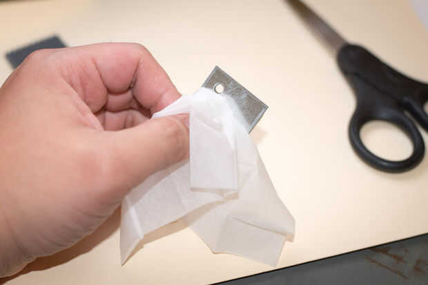 Retire todas las etiquetas o las etiquetas engomadas del ángulo. Limpiar el ángulo con un paño húmedo para eliminar cualquier residuo o pegajoso pegamento de la etiqueta. Esto ayudará a que el velcro se adhieren al ángulo. El ángulo de la viga que estoy usando es de tamaño: 1-1/2 "x 1-1/2" x 1-1/4".