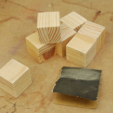 Lije los bordes de los bloques para que queden redondeados y agradable y suave. También tienes que redondear las aristas del bastidor de pino, con una pulidora o a mano. Trapo limpio para quitar cualquier polvo.