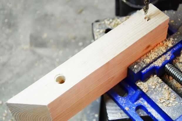 Perfore un agujero de 3/8 de pulgada 1 pulgada desde un extremo y un agujero de 1/2 pulgadas 7 pulgadas desde el extremo del mismo. Estos agujeros servirán como una ubicación para insertar el pasador para crear presión a través de la cinta de papel de lija y para dispersar la tensión para mantener el bloque de craqueo.