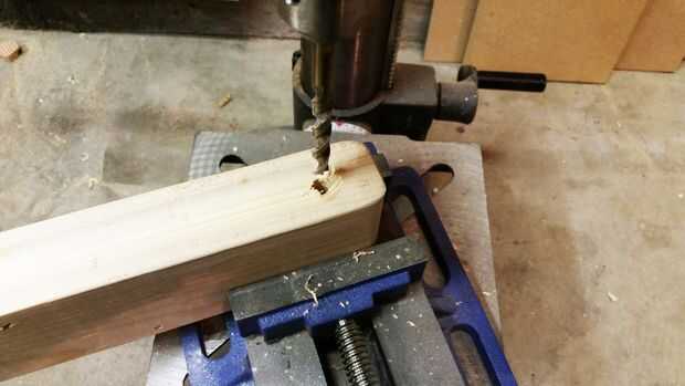 Perfore un agujero de 3/8 de pulgada 1 pulgada desde un extremo y un agujero de 1/2 pulgadas 7 pulgadas desde el extremo del mismo. Estos agujeros servirán como una ubicación para insertar el pasador para crear presión a través de la cinta de papel de lija y para dispersar la tensión para mantener el bloque de craqueo.