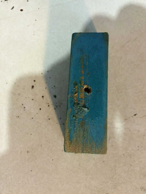 Utilice el taladro, hacer un agujero en el centro de cada cara del bloque.