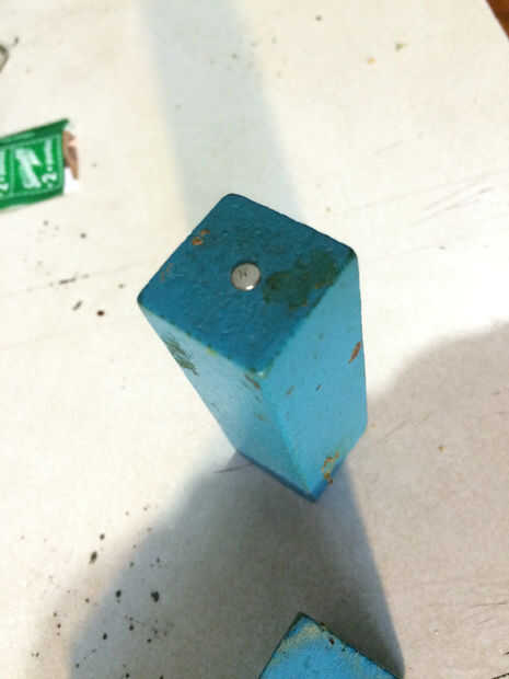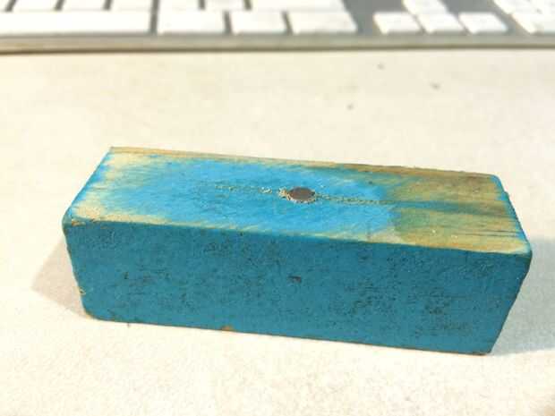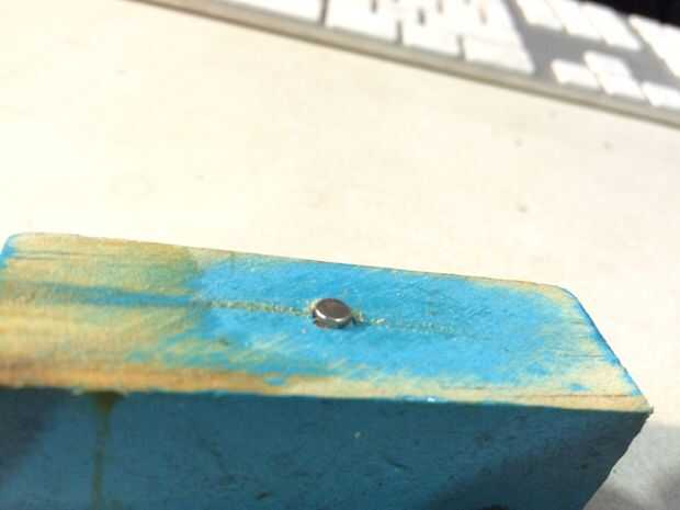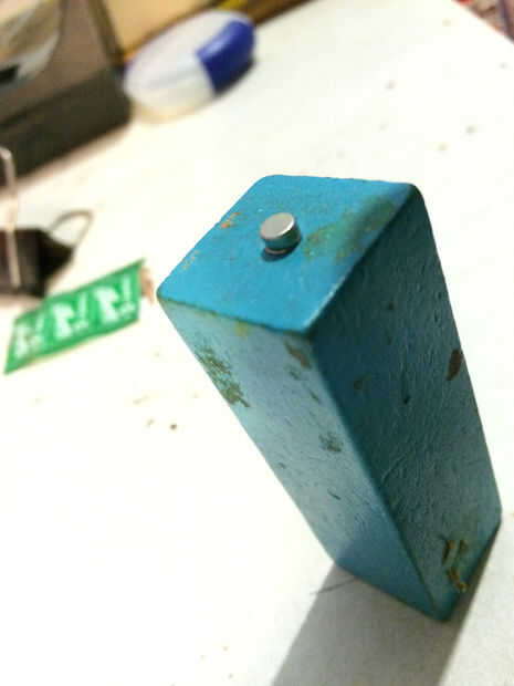 Las diferencias de ancho, 5 mm para el pedacito de taladro y 6 mm para el imán, hacen una conexión muy firme para no desmoronarse.