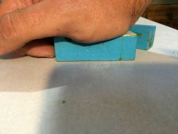 Puede utilizar un martillo para pulsar el bloque de madera contra la superficie, para asegurar un acabado liso (ver última foto)