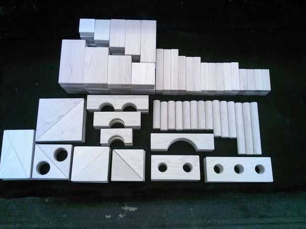 Este conjunto bloque de madera está hecha para los niños. Se hace de arce duro, que es denso y no se astilla. Estos bloques no tienen ningún final aplicada. Se toman en una pátina de manejo después de tiempo. Los tamaños y formas se pueden modificar para requisitos particulares a sus especificaciones