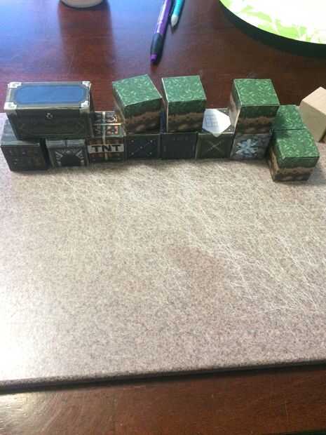 Si estabas buscando Papercraft llegaste al lugar equivocado, porque estos no son de papel, son madera maciza.Los cubos de Minecraft miniatura son los 2x2cm y están hechos de madera que tiene papel atascado alrededor de él con las texturas de versione