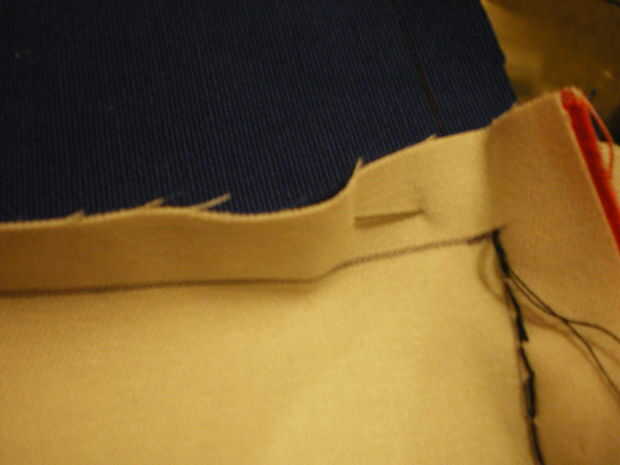 Coser el bloque de revés, doblar los lados, alfileres y cose a lo largo de las líneas.