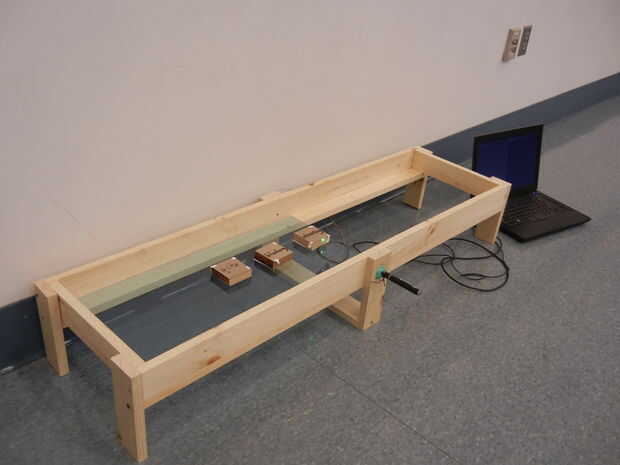 Escribir palabras en bloques y pegar un código qr equivalente en los fondos. Colocarlos sobre una mesa de acrílico transparente, y una webcam debajo descifra los códigos qr como se deslizan sobre él. El ordenador conectado a esta webcam entonces mira la frase que ha hecho y encuentra frases con coincidencia de palabras en un libro gratuito de proyecto Gutenberg. El equipo muestra la frase que encontró.