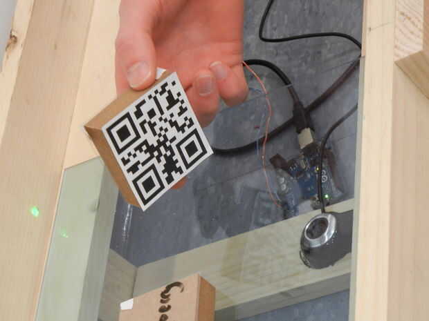 Para hacer las palabras legibles humano (Human Rights Watch, como se les conoce en el laboratorio) une piezas de transparencia en la parte superior de estos bloques con alguna cinta. La HRW fueron entonces cuidadosamente escritas a mano sobre el uso de marcadores de borrado seco. Hemos grabado el qrcode correspondiente en la parte inferior del bloque. En el futuro, vamos a tratar de grabado, laser grabado o impresión de pegatinas personalizadas para nuestras palabras.