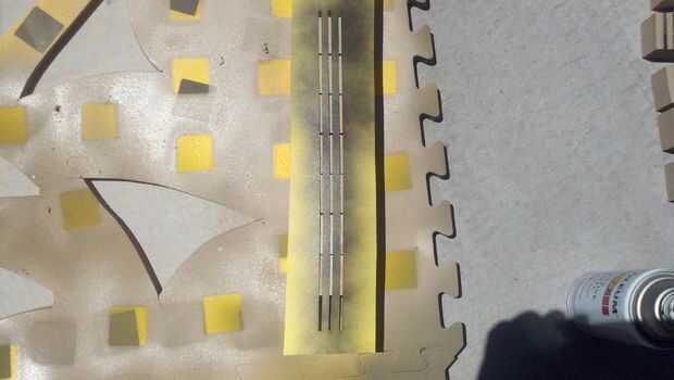Cuando todas las líneas horizontales de secado rociar poco de pintura en una taza de dixie y pintado las líneas verticales de mortero, mano y tocaba las líneas horizontales.