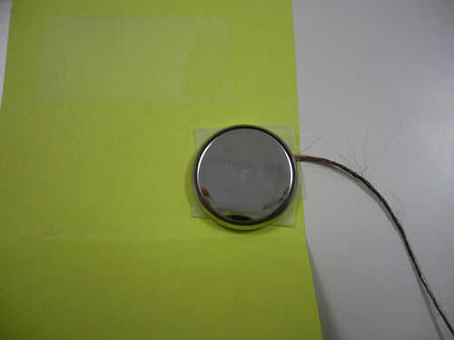 Coloque cinta adhesiva en el lugar y papel de hilo conductor y luego coloque una pila de botón. Recuerde que la dirección se coloca la batería.