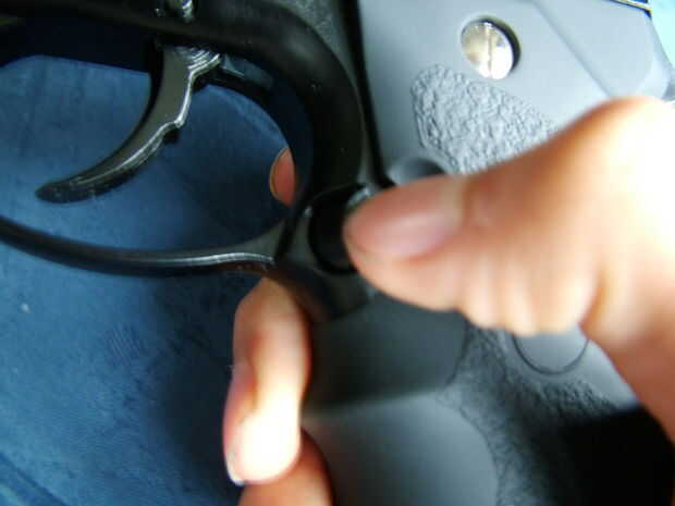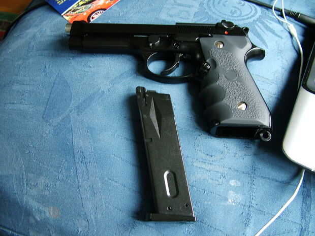 Ahora que tienes todo el equipo listo para aceite tu pistola, usted ahora necesita para asegurarse de que es segura trabajar con la pistola, este es el paso más importante que no desee ser tirar BB fuera de su cara, primero retire la revista pulsando el botón de liberación del cargador, justo debajo del gatillo de mi pistola , conjunto de la revista a un lado y luego recoger su arma y mientras lo sujeta en su mano tire la corredera atrás y compruebe que hay no hay BB en la cámara, si todo está claro, entonces estás listo para pasar al siguiente paso!