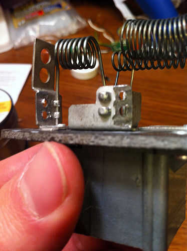 Utilice el extremo puntiagudo de la broca del molinillo apenas perforar el resto del material hacia fuera y un poco de la superficie galvanizada hasta el metal limpio.  Supongo que usted podría utilizar una broca pequeña para este paso también.  Me pareció más rápida al usar la esmeriladora de troquel.