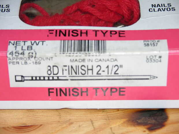 1. caja de clavos, cuanto más agudo mejor, usé acabado 8D 2-1/2" no tienen grandes cabezas en ellos.