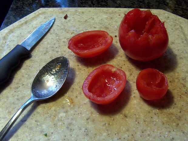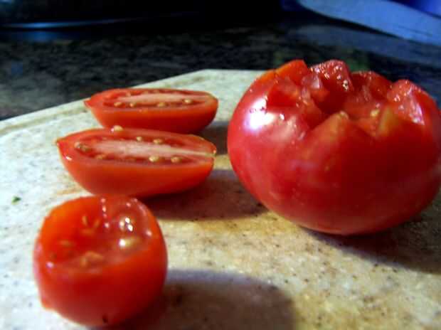 Ahora toma tu tomate seleccionado y cuchillo y manos a la obra,