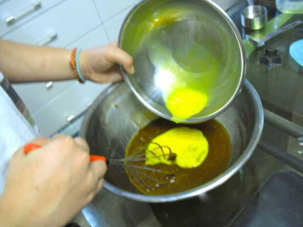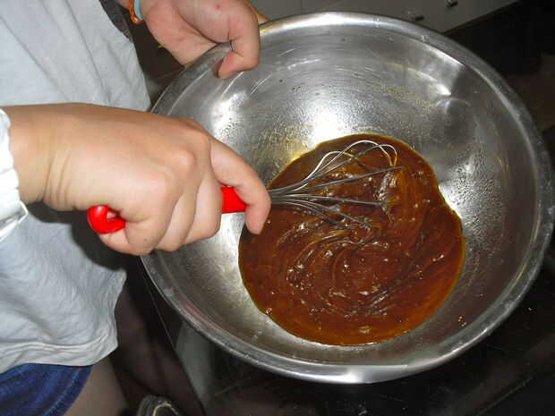 3. mezclar el azúcar morena y la mantequilla en un bol.
