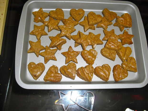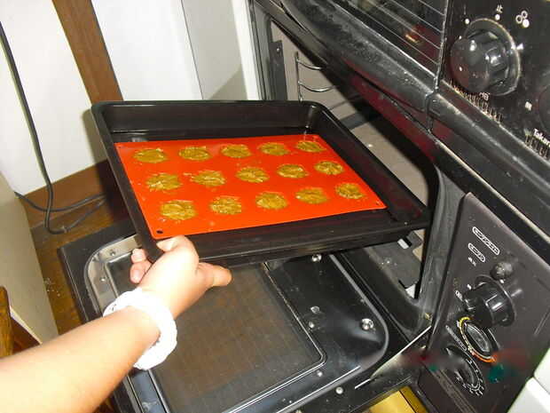7. usted puede hornear galletas en moldes de silicona o en un sartén y use cortadores de galletas para recortar las formas. Hornear durante unos 20 minutos.