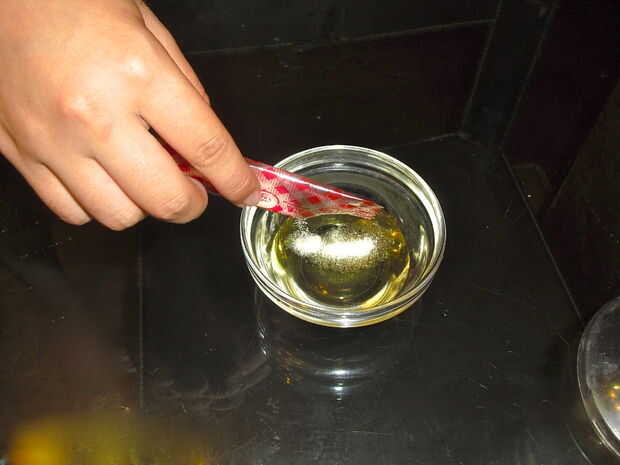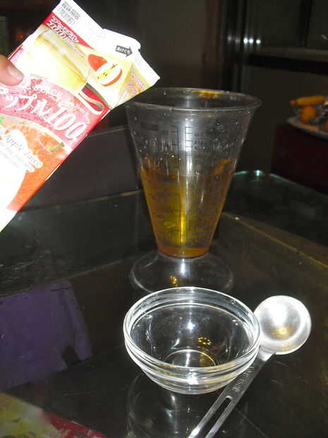 2. Coloque un paquete de gelatina en el zumo de manzana separada.
