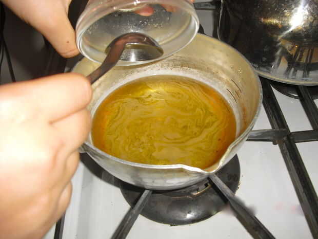 3. caliente el zumo de manzana sin la gelatina en un cazo hasta que esté caliente pero no hirviendo y apagar el fuego.