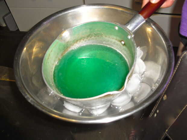 6. Ponga la cacerola en un recipiente grande con hielo para enfriar la mezcla.