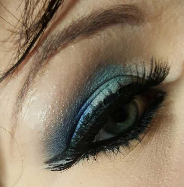 3. luego con el azul más claro en esta paleta toque esto en el centro de mis ojos.