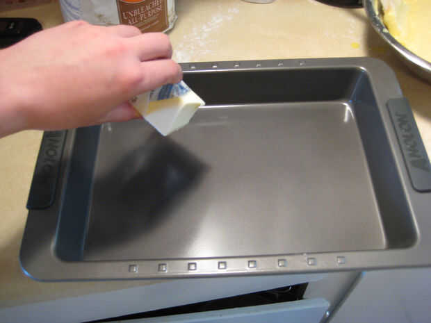 Engrasar ligeramente la bandeja con el extremo de una barra de mantequilla