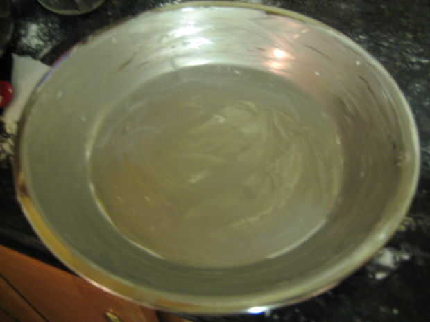Limpie abajo tu pastel lata con mantequilla y luego harina ligeramente. Esto es para que la masa no se pegue.