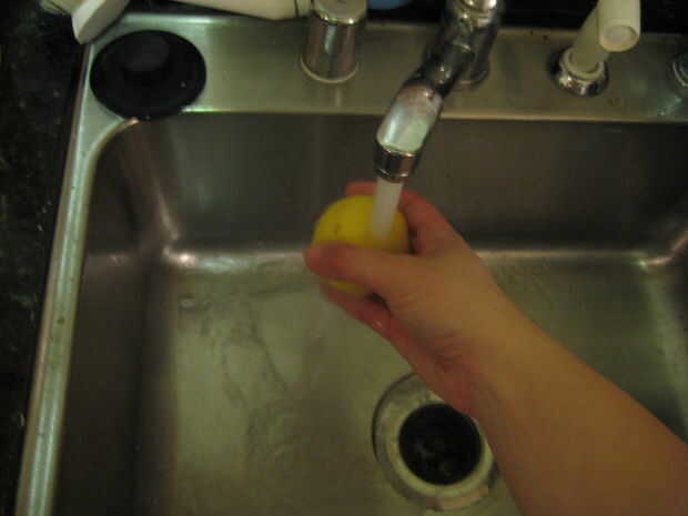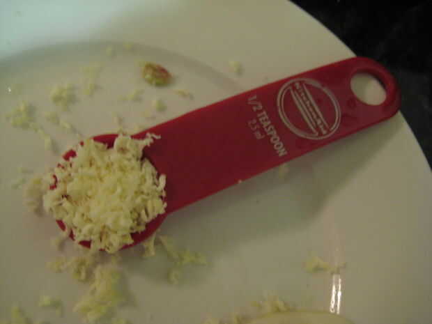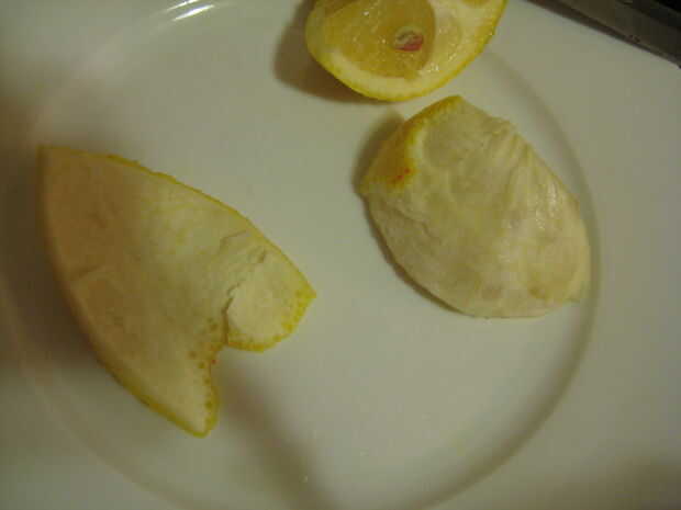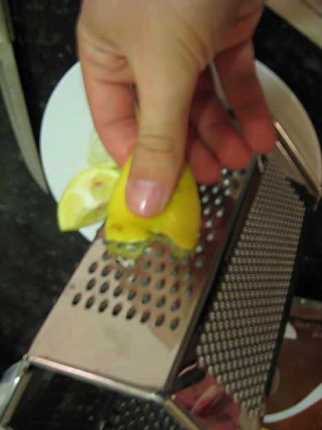 Pelar el limón y luego y recoger la cáscara. Con el rallador, moler dentro de la cáscara en finas escamas hasta que tenga la mitad de una cucharilla vale la pena.