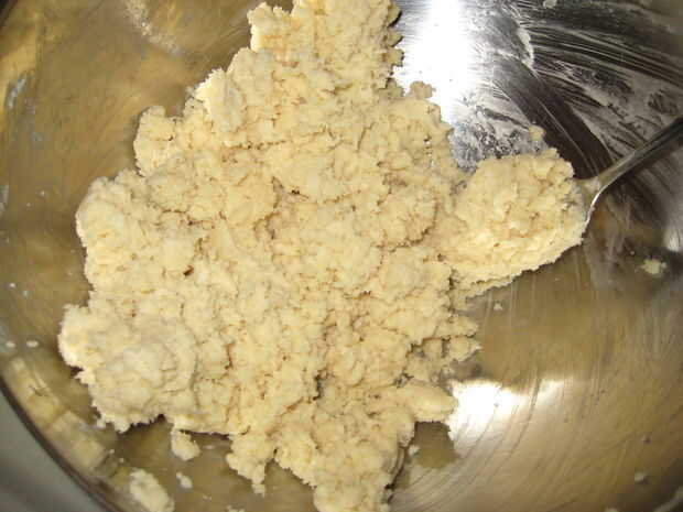 Mezclar el agua con hielo en la pasta aproximadamente una cucharada sopera en un momento y continúe batiendo hasta que la masa puede sostenerse juntos. Usted probablemente no debería terminar poner también mucho más que un cuarto de una taza.