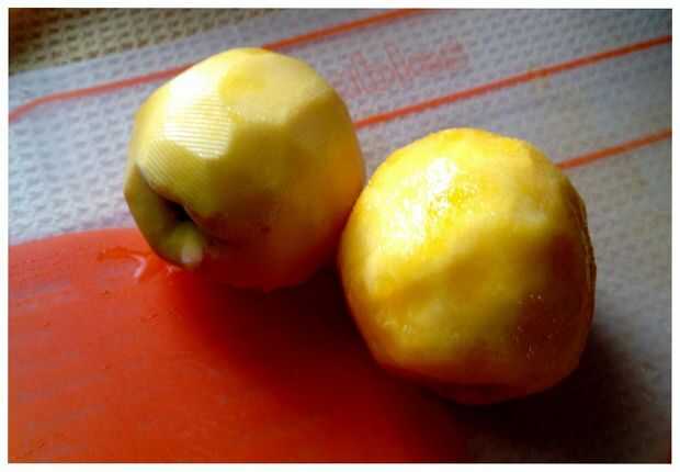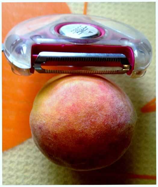 Si usted posee un pelador serrado que no tiene que hervir melocotones para quitar la cáscara, un pelador serrado fácilmente quita cáscaras de durazno. Pelar, hoyo y cortar en trozos de 1/2 pulgada, agregar al bowl y mezclar todo hasta combinar.