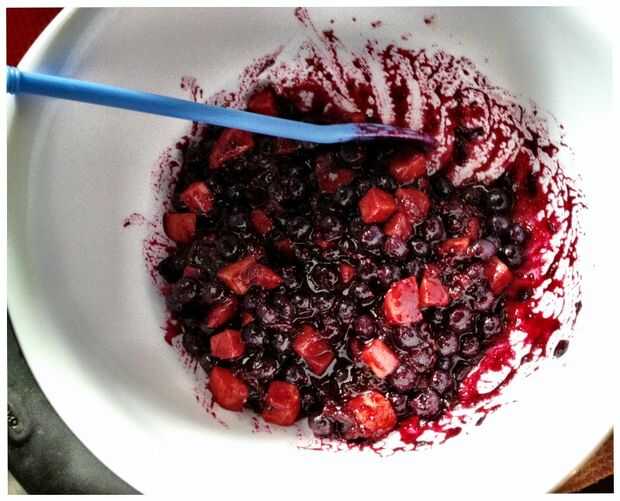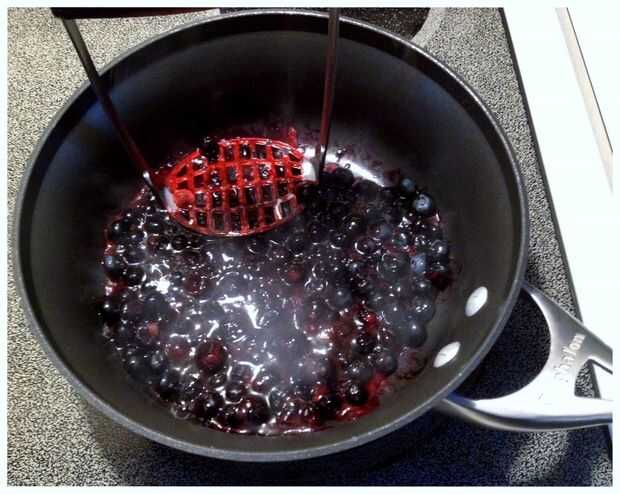 Añadir el azúcar, ralladura de limón y jugo, manzana rallada, suelo tapioca, canela, vainilla, sal y quedarse arándanos a los arándanos reducidos. Deje que se enfríe completamente mientras prepara duraznos.