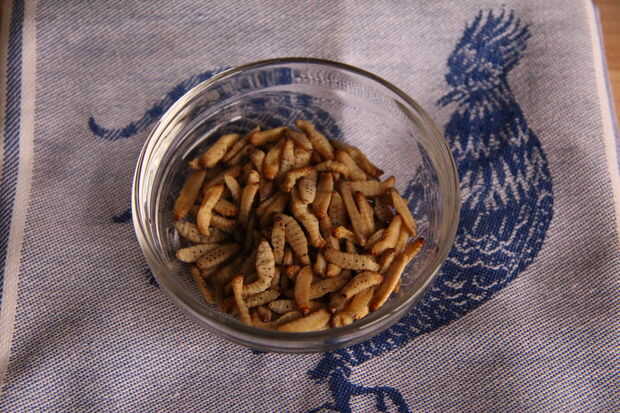 Cuarto taza de gusanos de cera o de otro insecto (realmente, incumbe a usted cuántas larvas que quieras en tus muffins)