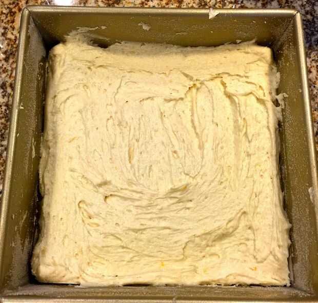 Después el arándano se mezcla con masa de pastel de café, poner 2/3 de la masa en la parte inferior de la olla de preparado de pastel...
