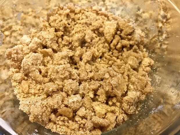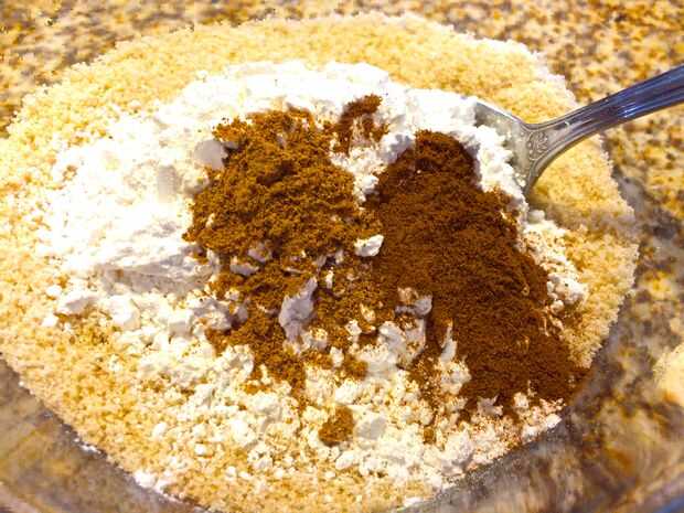 Añadir la harina, la canela y la nuez moscada, mezclar hasta combinar uniformemente en los azúcares.